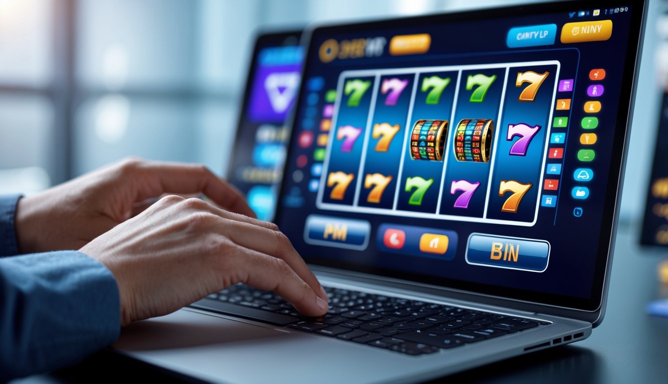 Seseorang menggunakan laptop dan ponsel untuk bermain judi online dengan antarmuka yang menarik dan mudah digunakan.