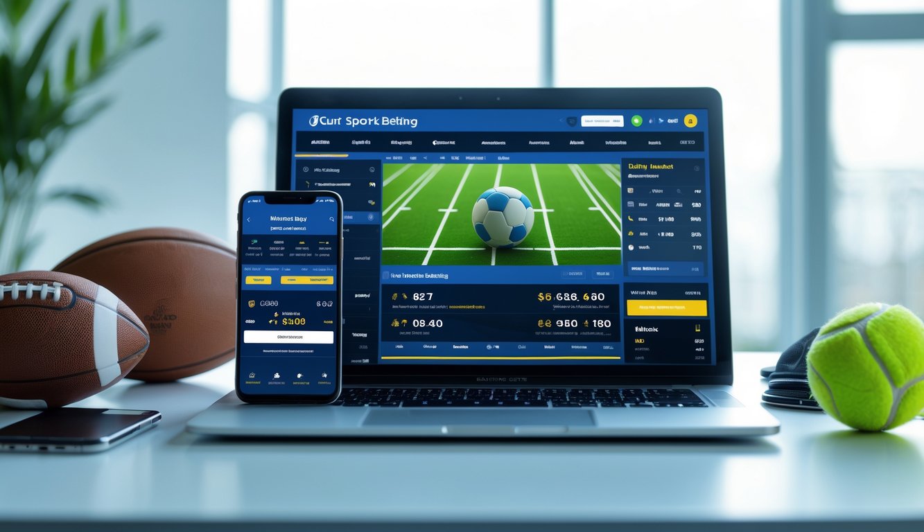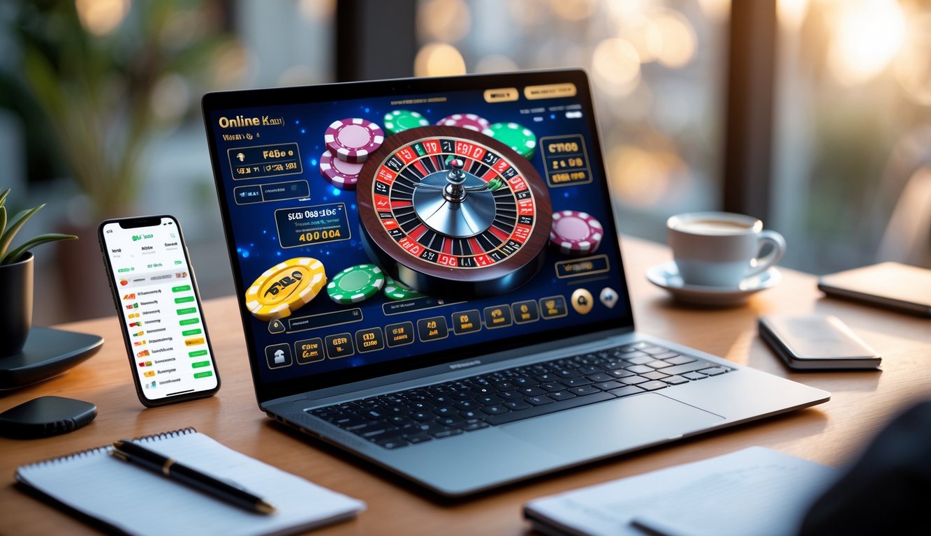 Seseorang menggunakan laptop dan ponsel untuk bermain judi online dengan antarmuka yang menarik dan mudah digunakan.